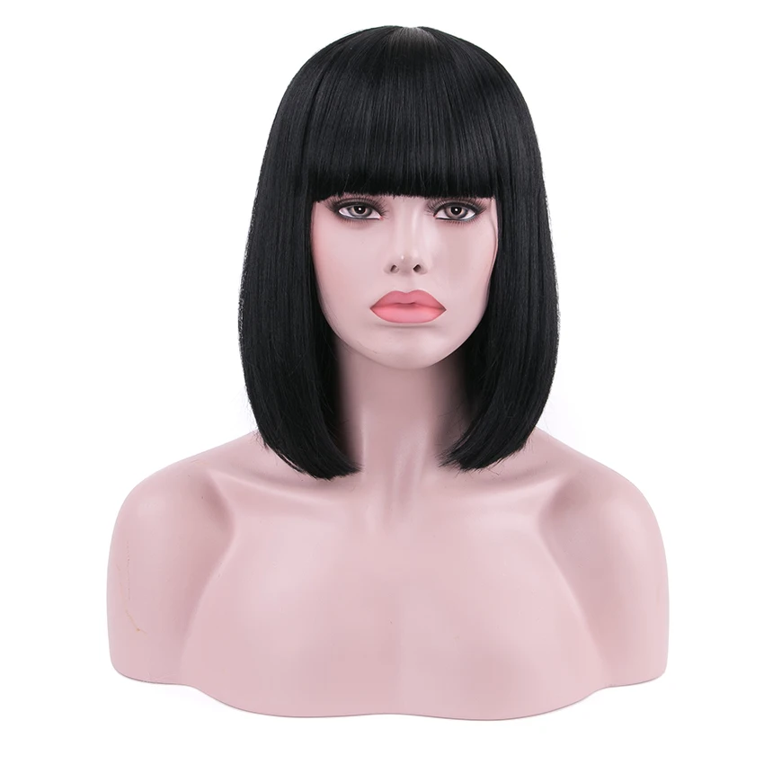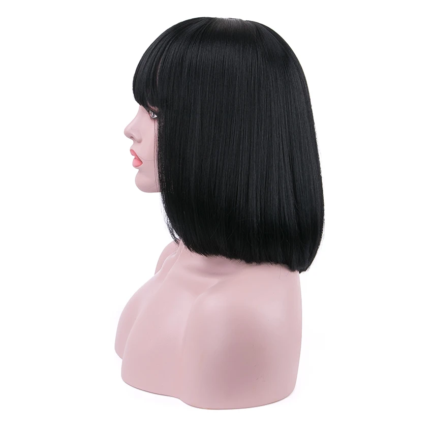 Rosa Star Short Straight Synthetic Wig With Bangs For Women Black Bob Wig Heat Resistant Cosplay Co