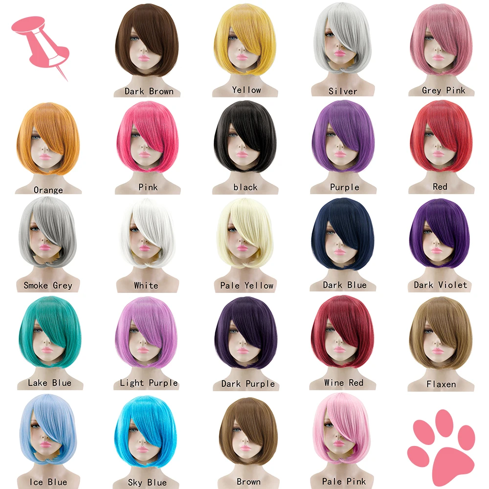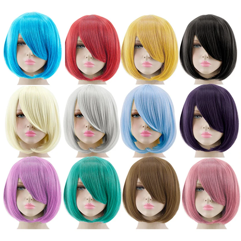 Allaosify cosplay wig 23 colors 14 inches synthetic high quality straight bob pink red black brown