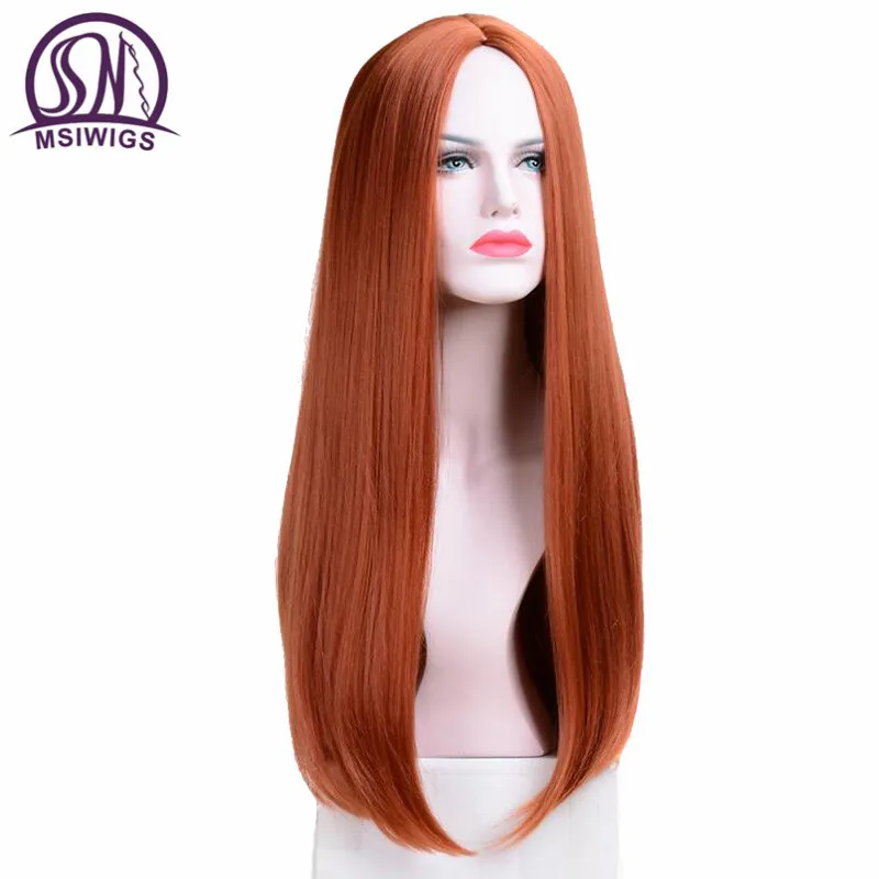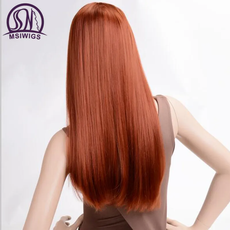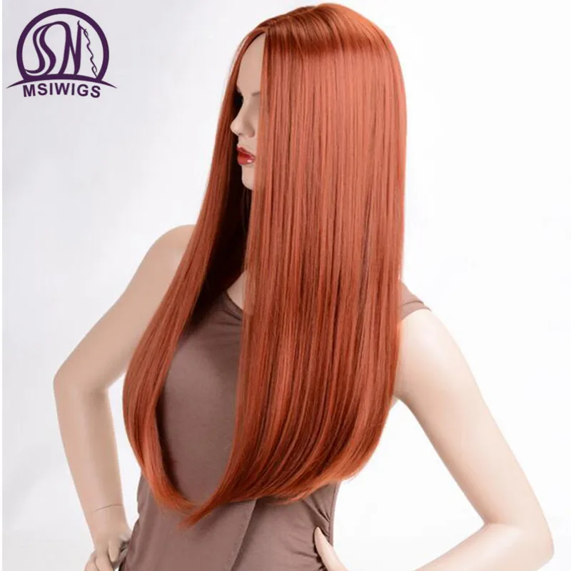 HIGH QUALITY MSIWIGS Long Straight Wigs Synthetic Orange Color Women's Wig 24 Inches Central Part Hair Silver Gr