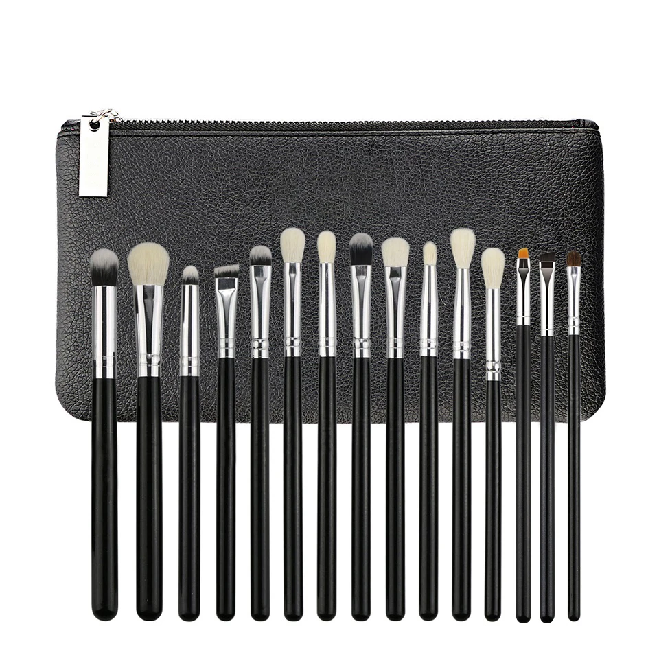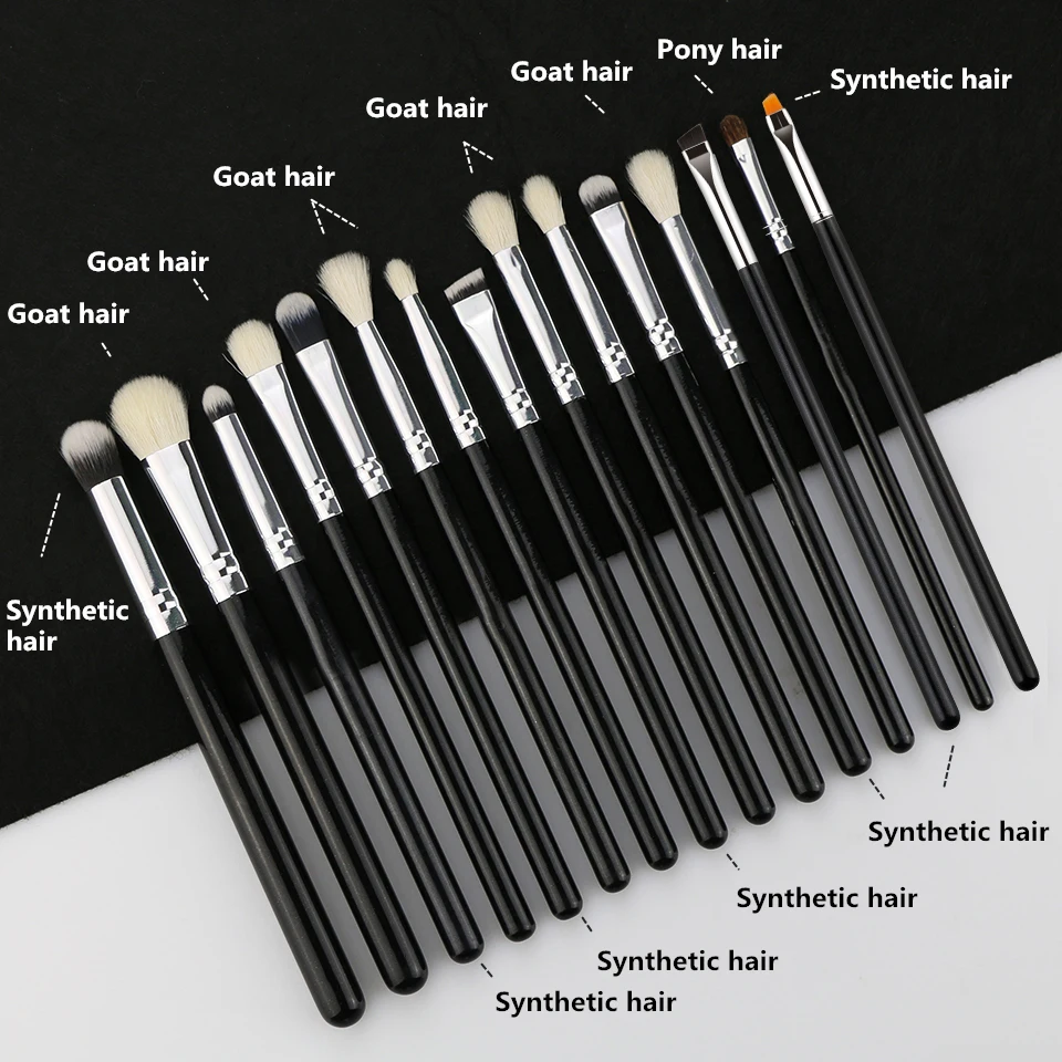 BEILI Black 15Pcs no Logo Eye Makeup brush set Natural Goat Pony hair Eyeliner Eye shadow Blending