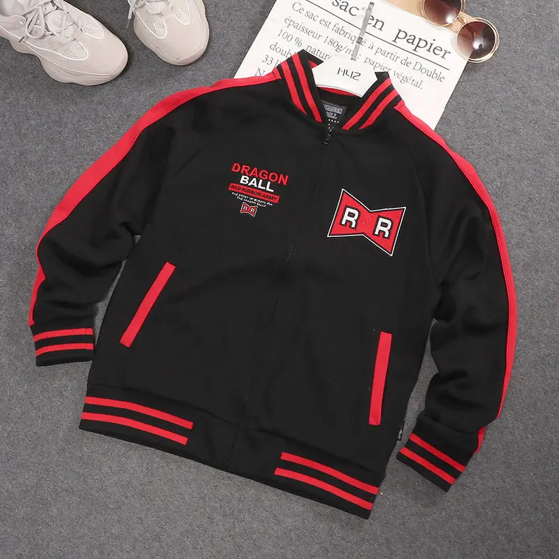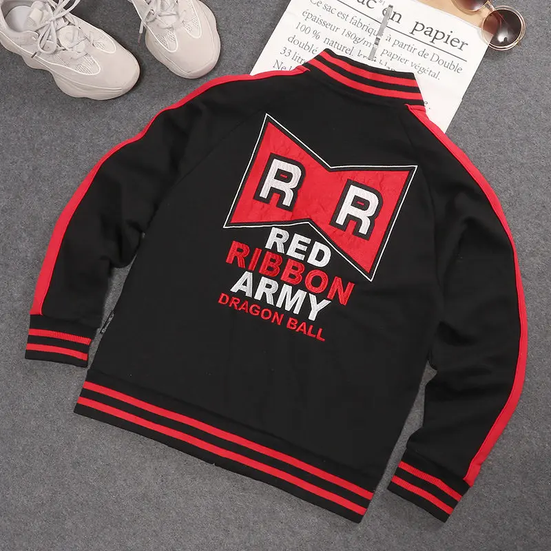 ORIGINAL Japan Anime Dragon Ball RR Baseball Jacket DBZ Red Ribbon Army Unisex Women Black Red Patchwork Jac
